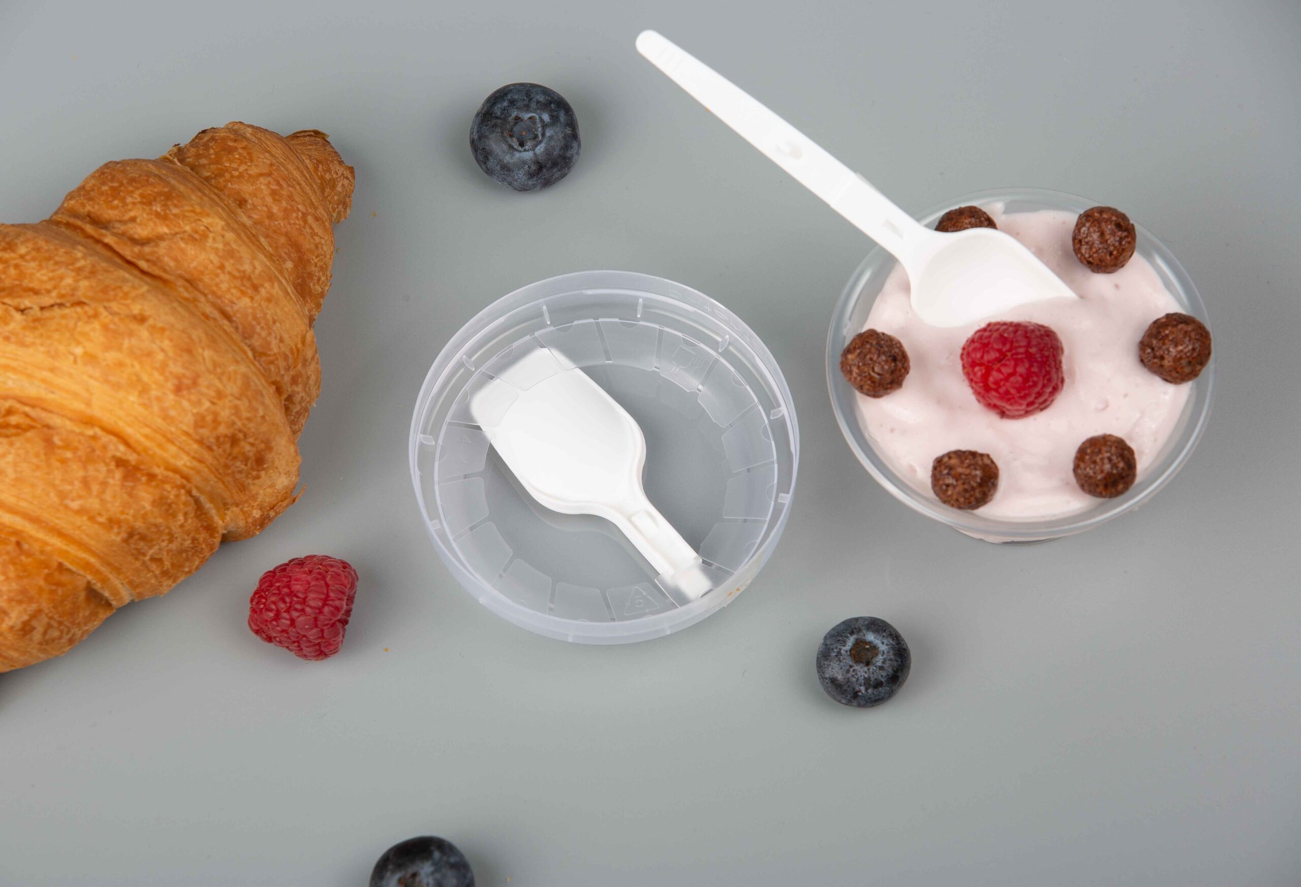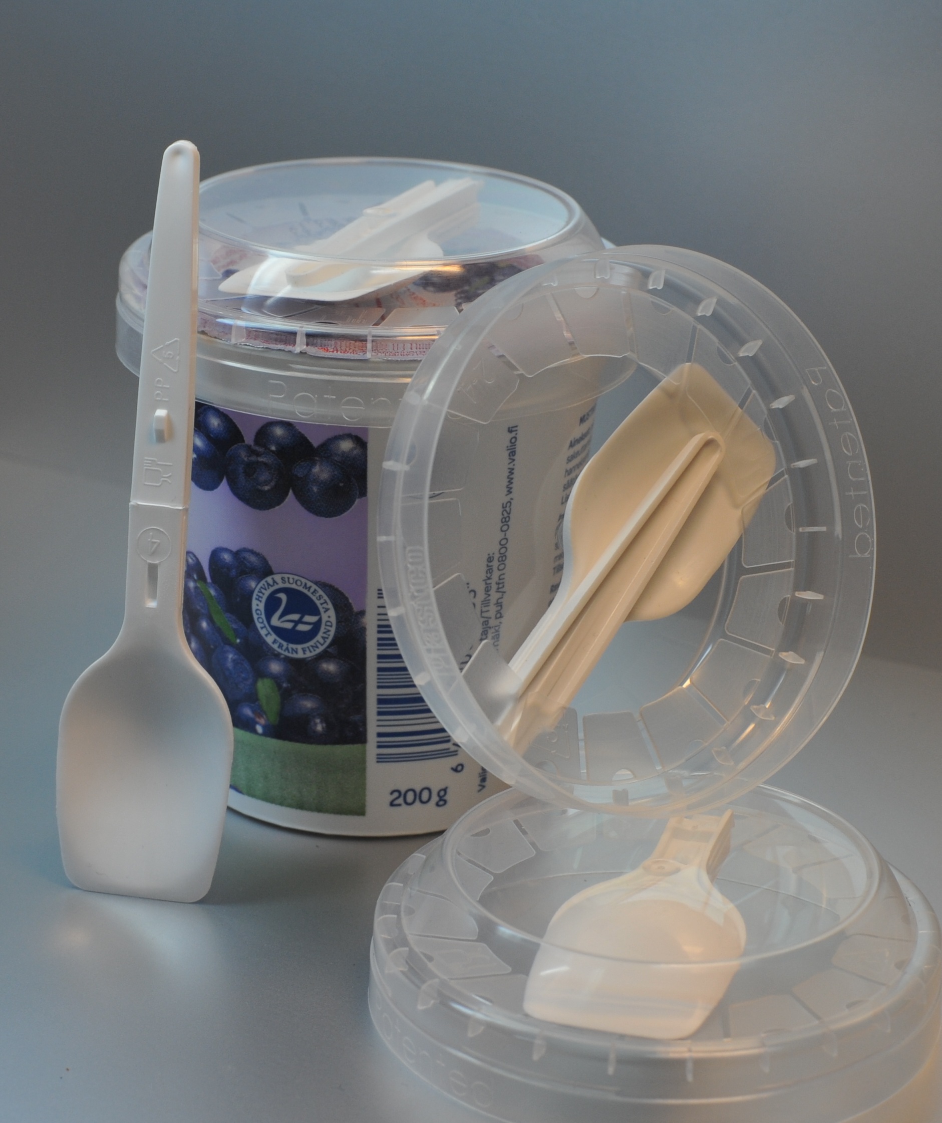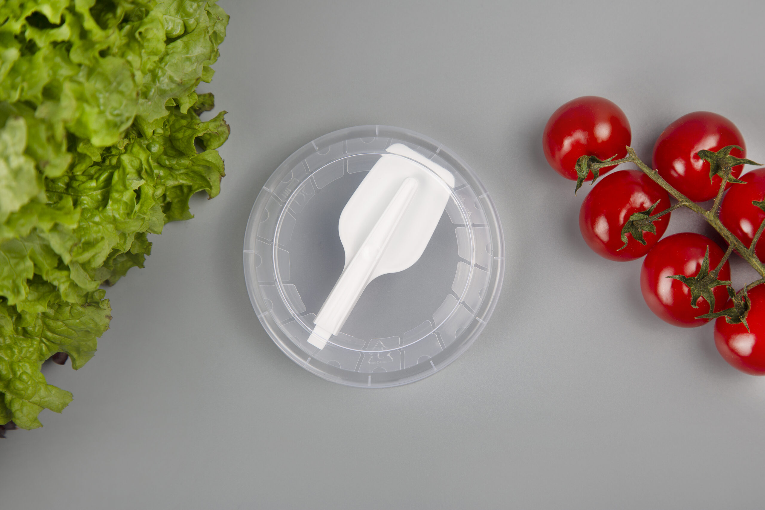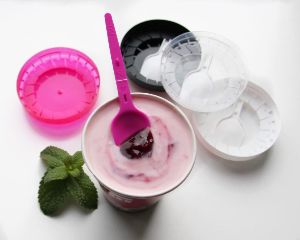 Складна ложка/виделка/паличка, розташована всередині кришки, дає змогу споживати морозиво, йогурти, желе, фруктові салати, локшину, рис, пасту, каші, мюслі, гранолу та інші продукти, на ходу.